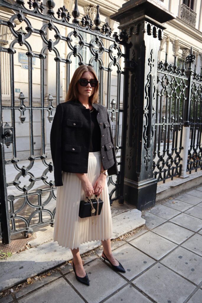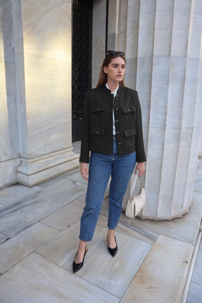 Today the Chanel tweed jacket remains absolutely timeless and an easy to style item that can be worn from morning to night. The street style appearances at Fashion Week prove that it is always at the forefront of fashion, as we see it combined with casual jeans or leather pants, mini skirts or pleated, boots and loafers or even combined with a total tweed look.