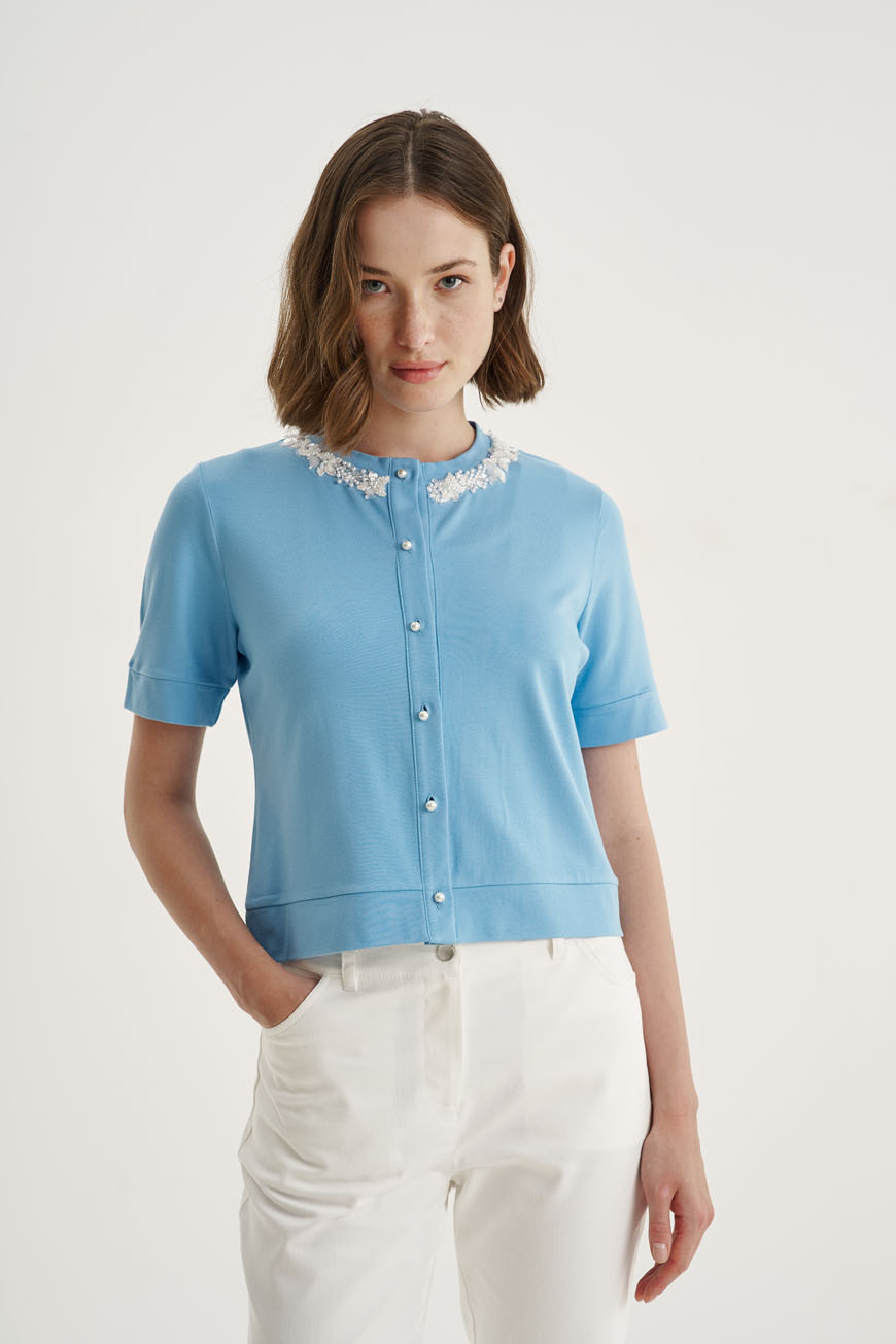 Contrast detail on neckline