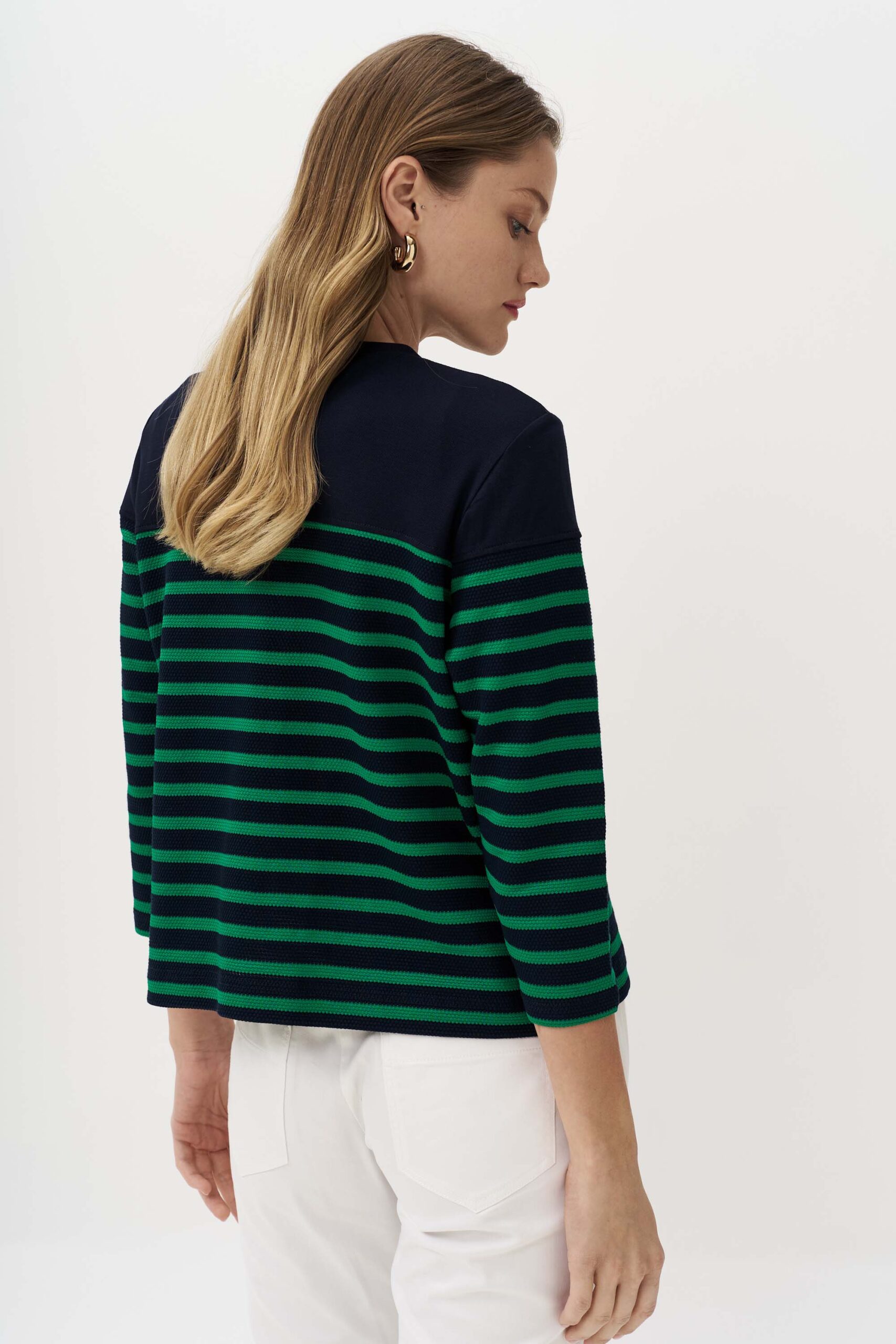 Elegant blouse made of knitted viscose fabric with contrast stripe