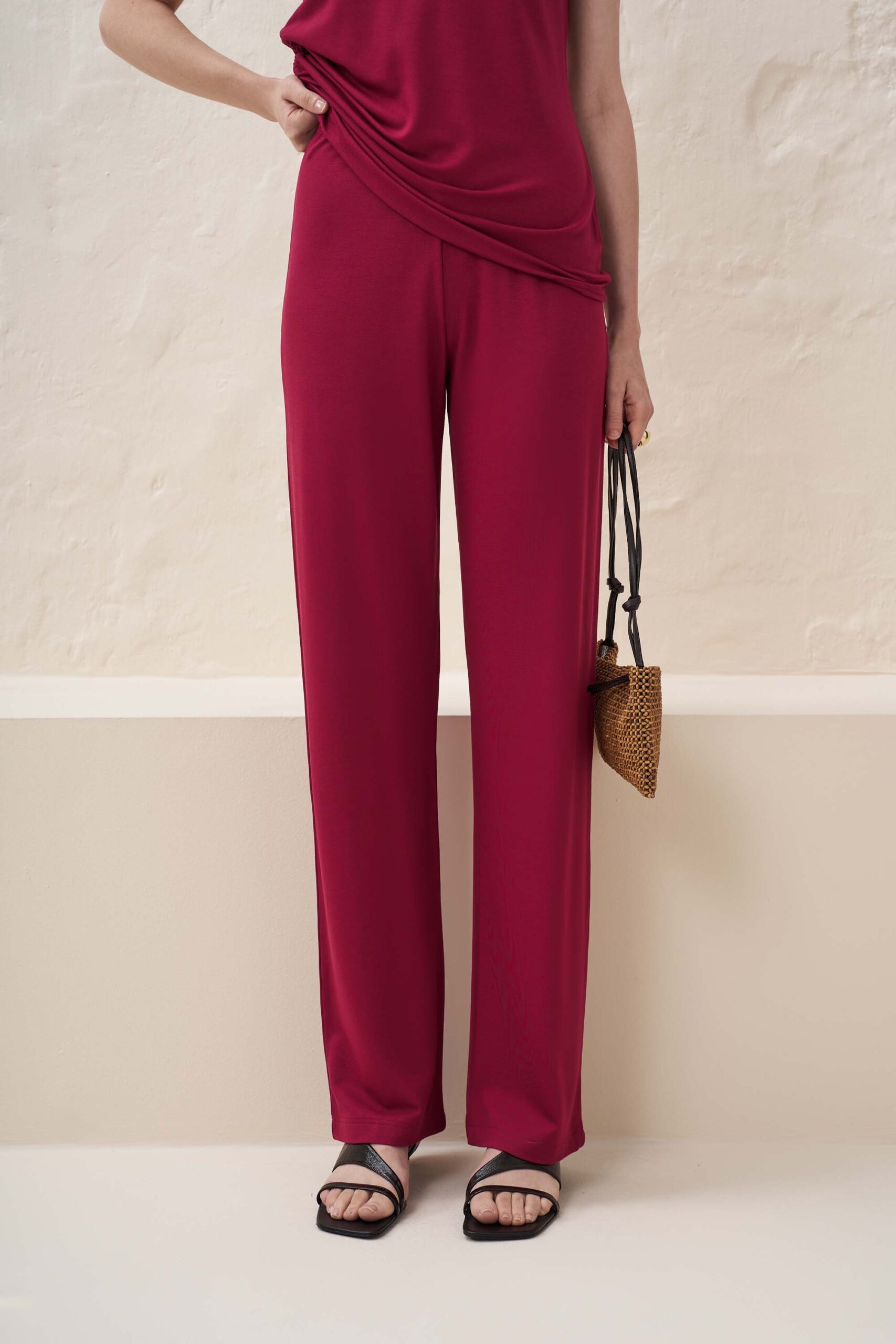 Solid color casual trousers in knitted fabric made in viscose