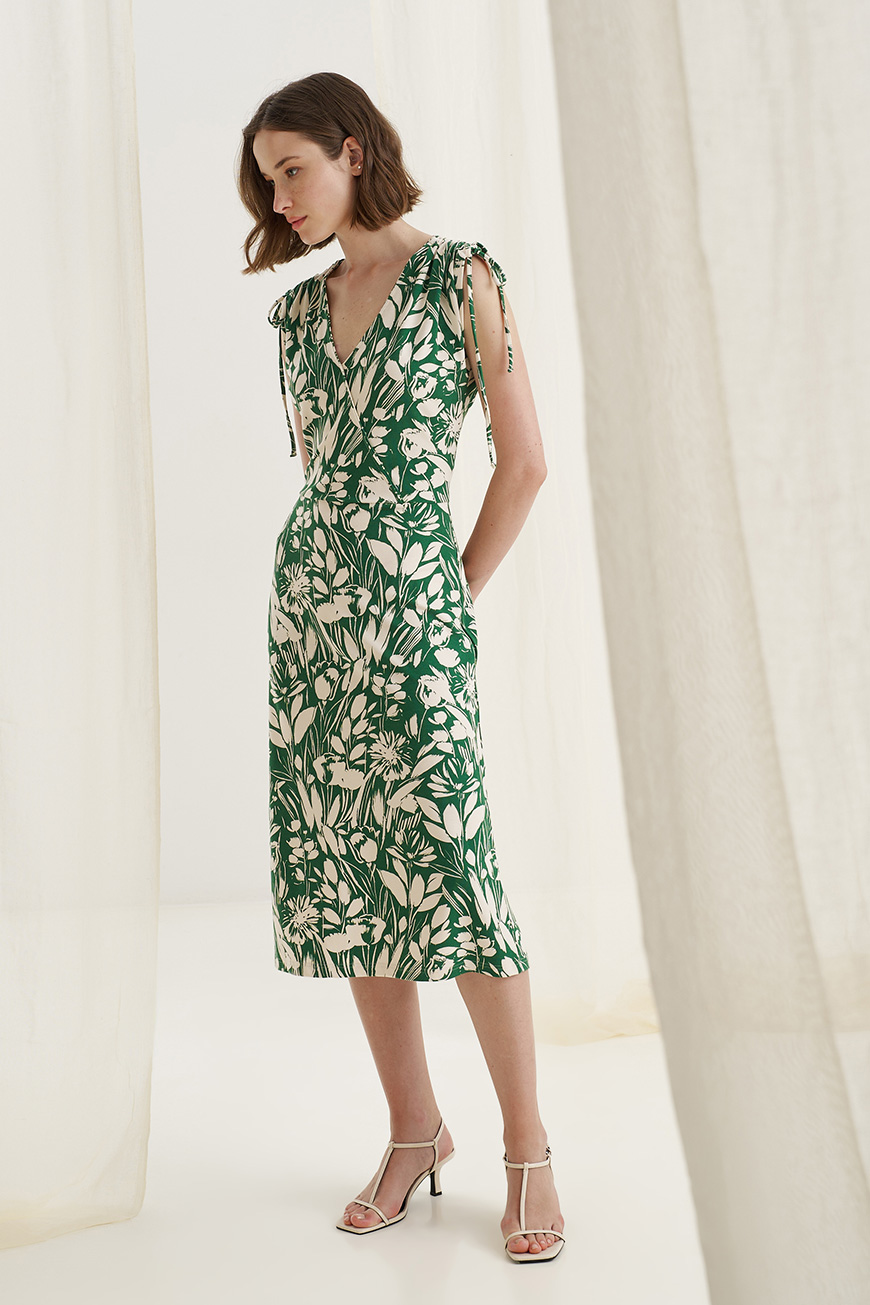 Ve dress drape shoulders green