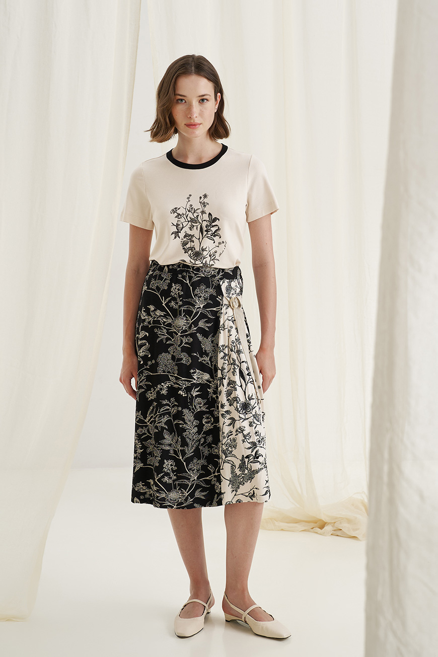 Wrap skirt birds print