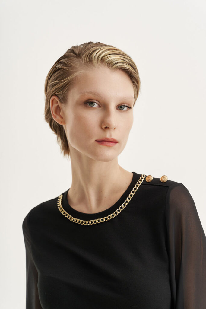 Must-have τοπ με μουσελίνα μανίκι και αλυσίδα