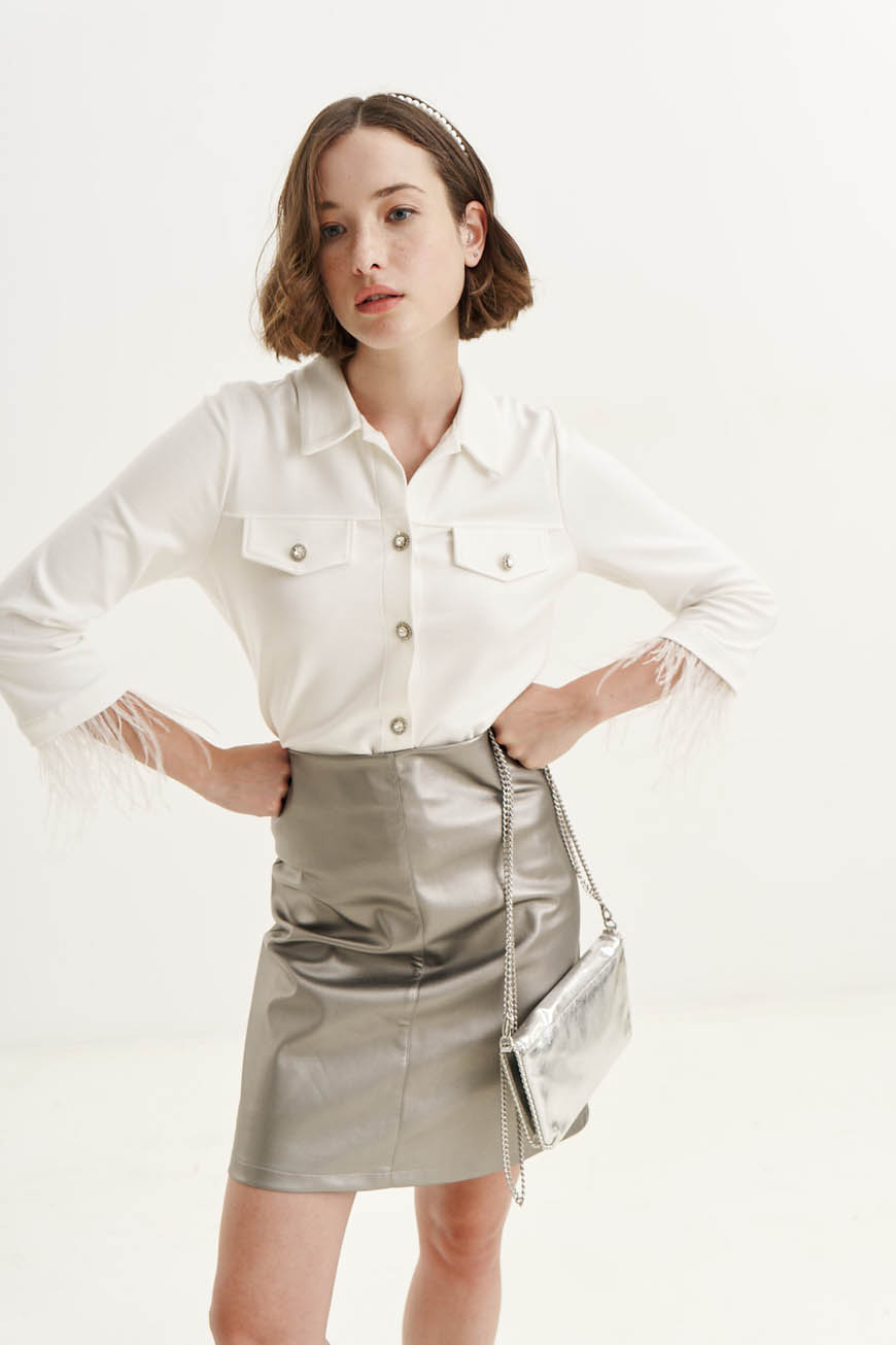 Styling Tip: Η φούστα από δερματίνη σε ασημί ή χρυσό χρώμα συνδυάζεται εύκολα με σακάκια για πιο δυναμικό αποτέλεσμα, φέρνοντας το εντυπωσιακό σε καθημερινό πλαίσιο.