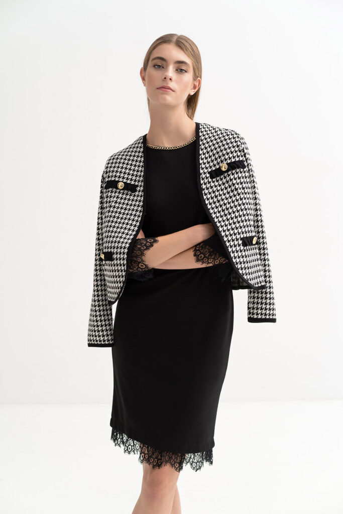 Η elegant pied de poule ζακέτα