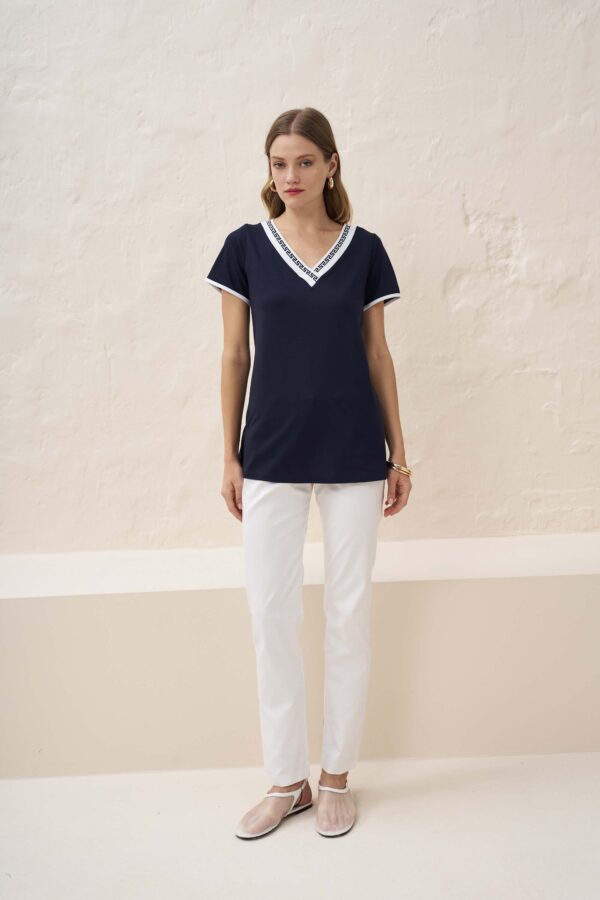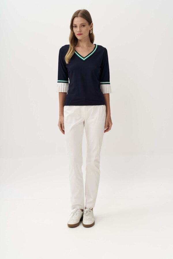 Κομψή μπλούζα από πλεκτό ύφασμα βισκόζης με contrast λωρίδα