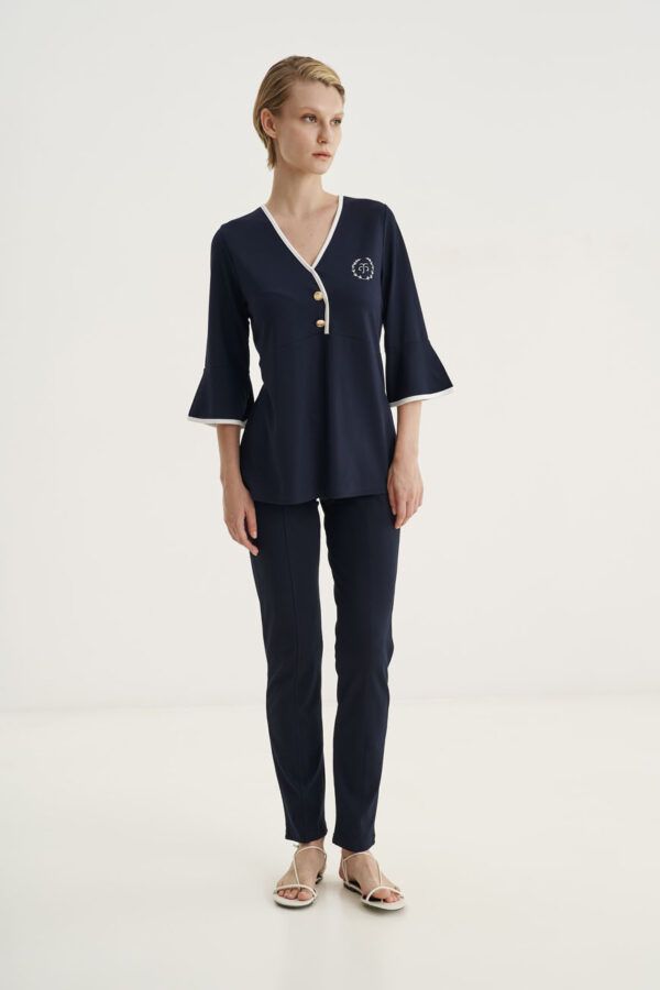 Sport chic μπλούζα από πλεκτό ύφασμα βισκόζης με υπέροχες contrast λεπτομέρειες