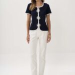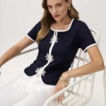 Κομψή και εντυπωσιακή μπλούζα με εφέ ζακέτας από πλεκτό ύφασμα βισκόζης