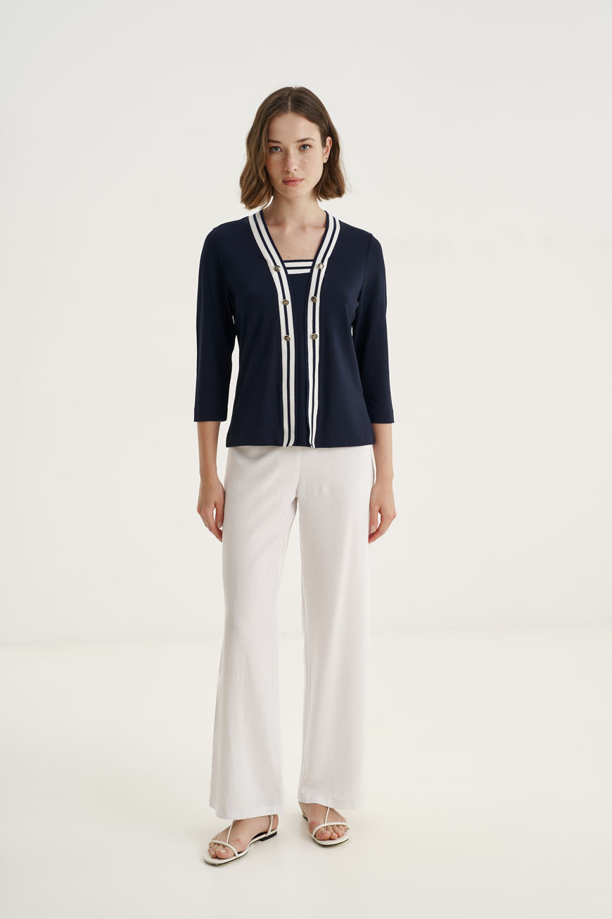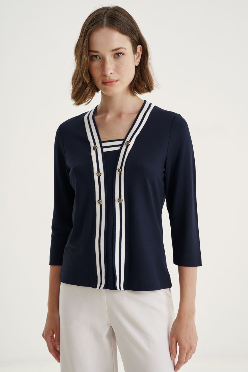 Εντυπωσιακή μπλούζα από πλεκτό ύφασμα βισκόζης με εφέ ζακέτας