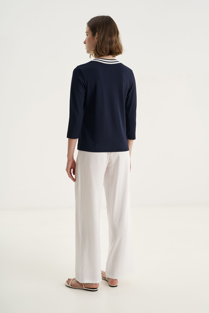 Sport chic μπλούζα από πλεκτό ύφασμα βισκόζης με υπέροχες contrast λεπτομέρειες