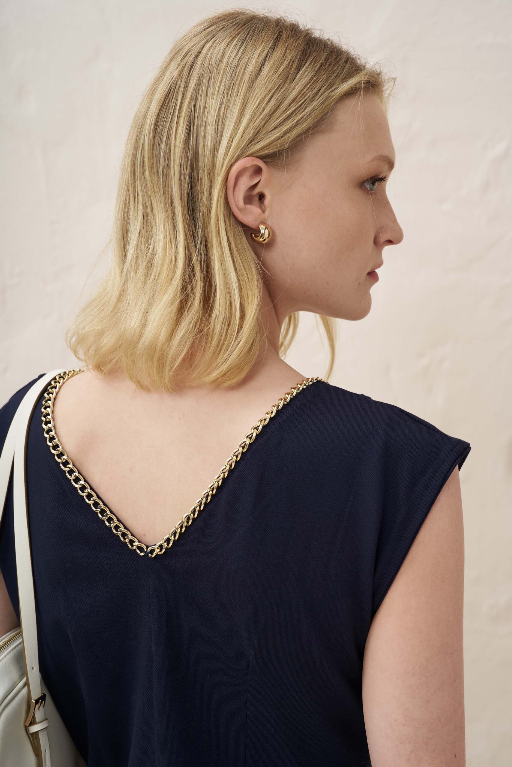 Εντυπωσιακή μπλούζα από πλεκτό ύφασμα βισκόζης με αλυσίδα ραμμένη χειροποίητα