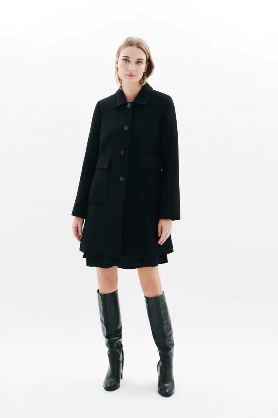 Το παλτό Geraldine είναι μια νέα προσθήκη αυτή τη σεζόν. Το ίσιο, μεσαίου μήκους κόψιμό του επιμηκύνει οπτικά τη σιλουέτα. Κατασκευασμένο κυρίως από μαλλί, προσφέρει απαλή αφή και ευχάριστη ζεστασιά. Ιδανικό για να ανανεώσετε την γκαρνταρόμπα σας με κομψότητα.