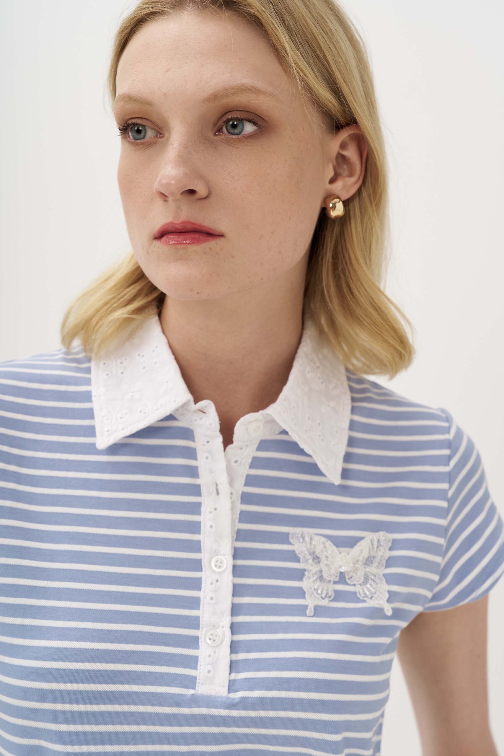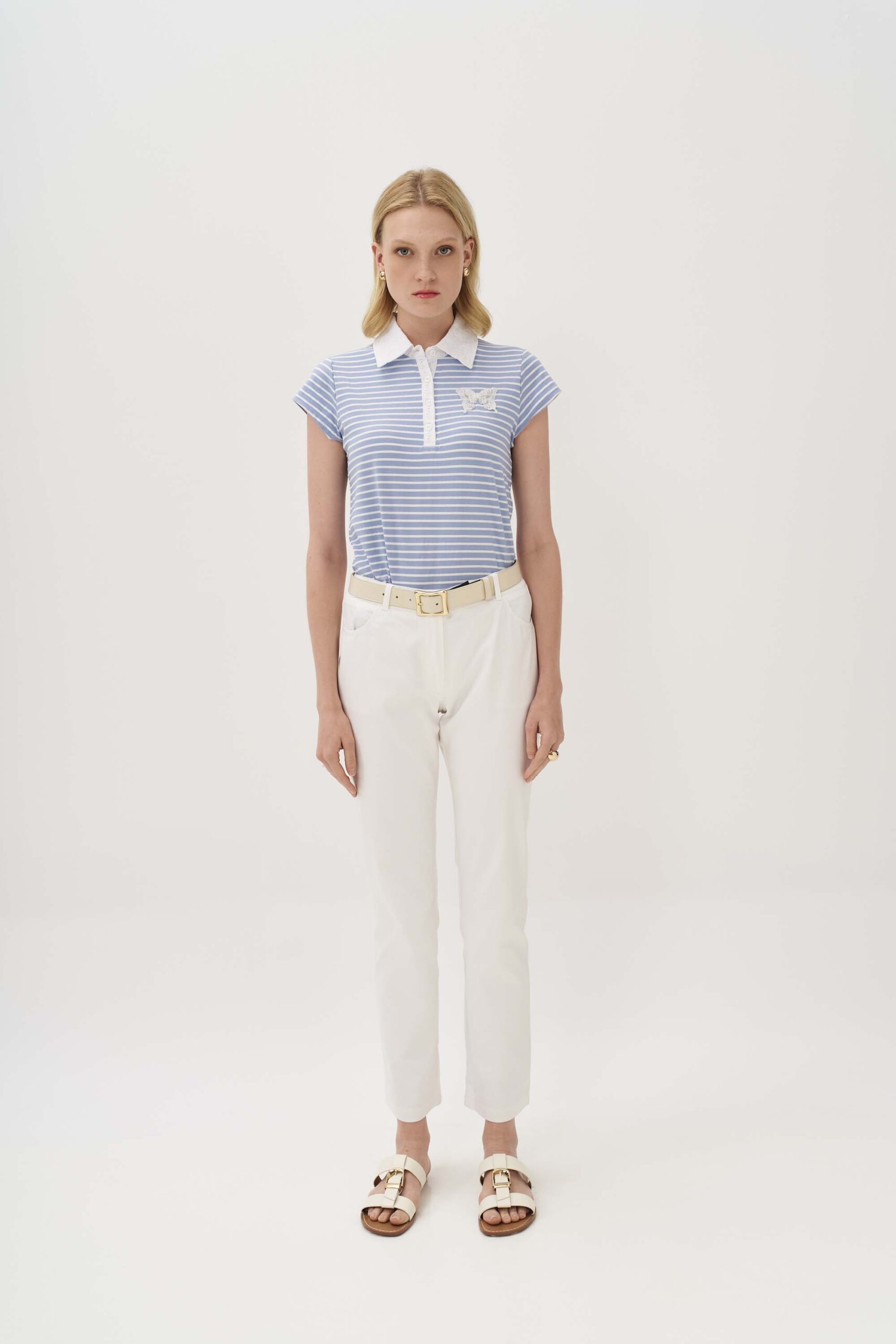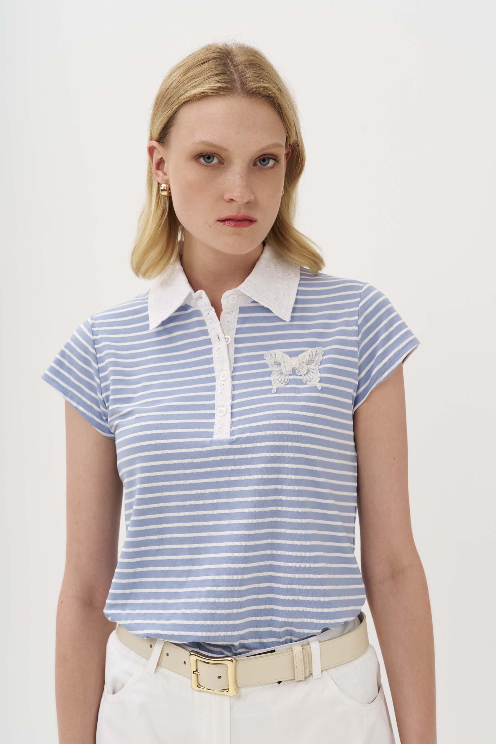 Πόλο ριγέ broderie