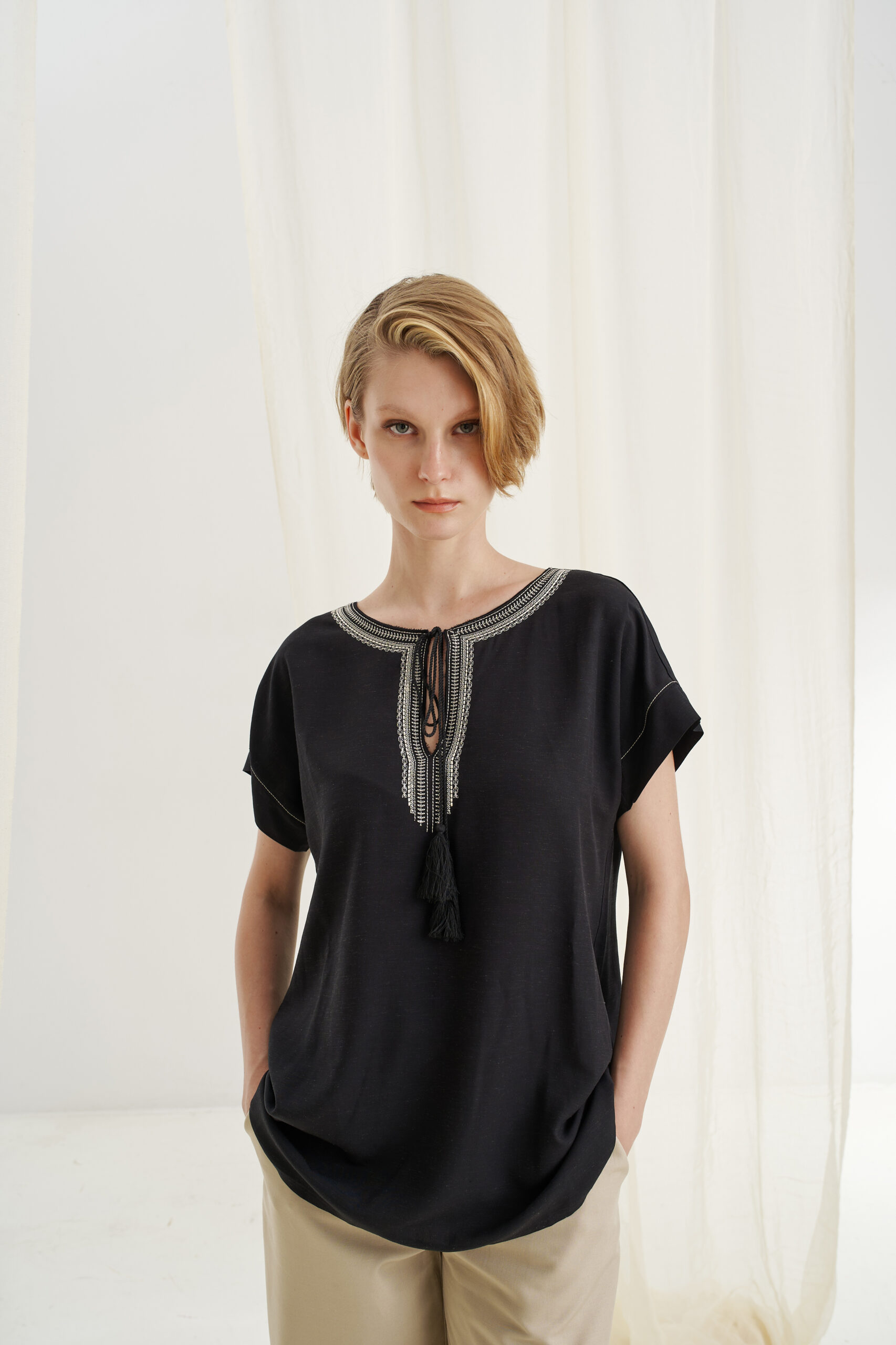 Τουνίκ κεντήματα με μείγμα λινού