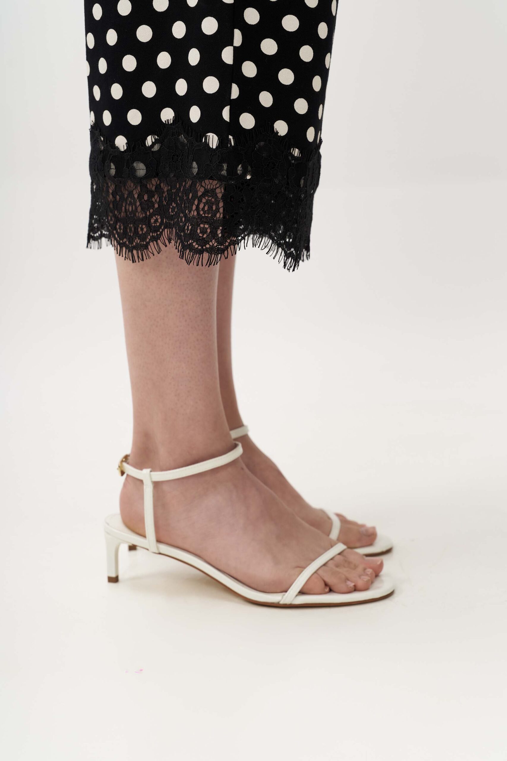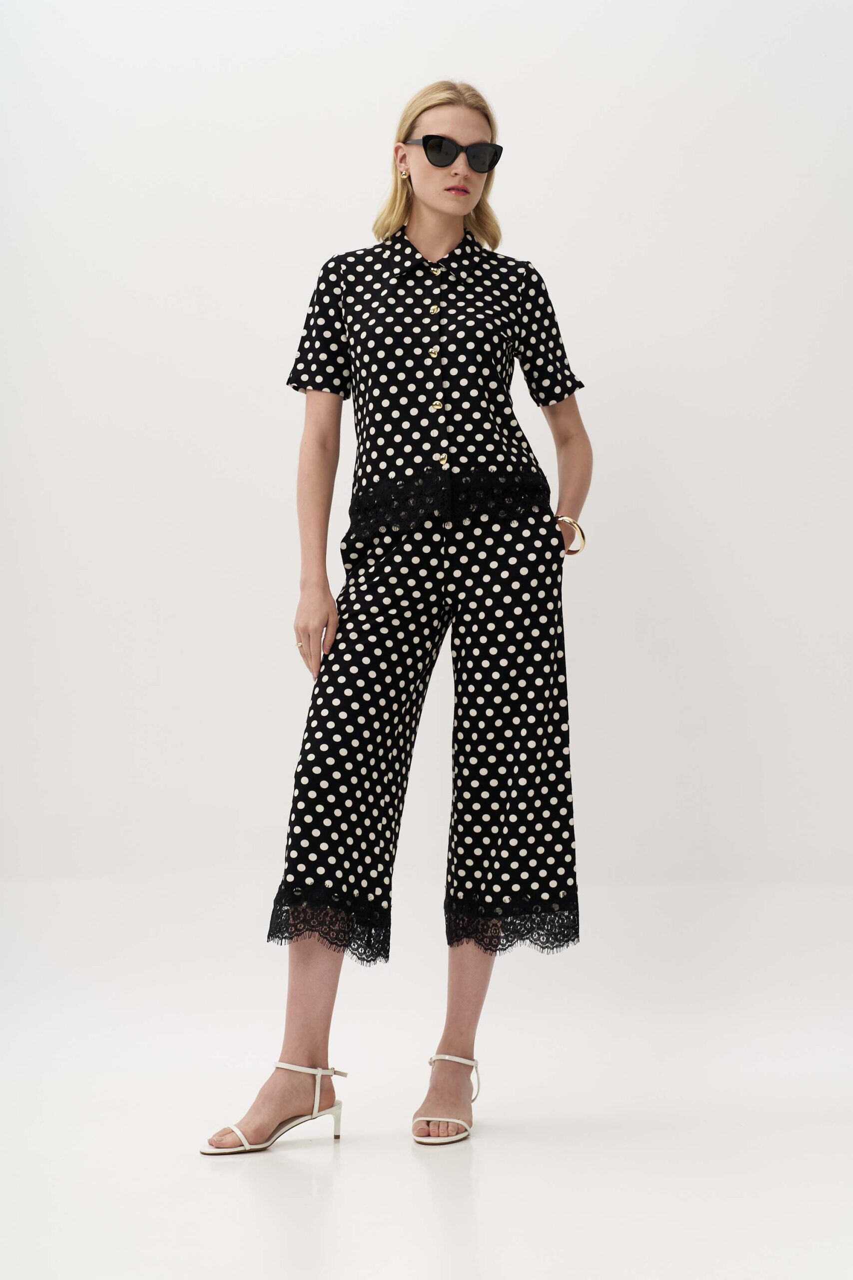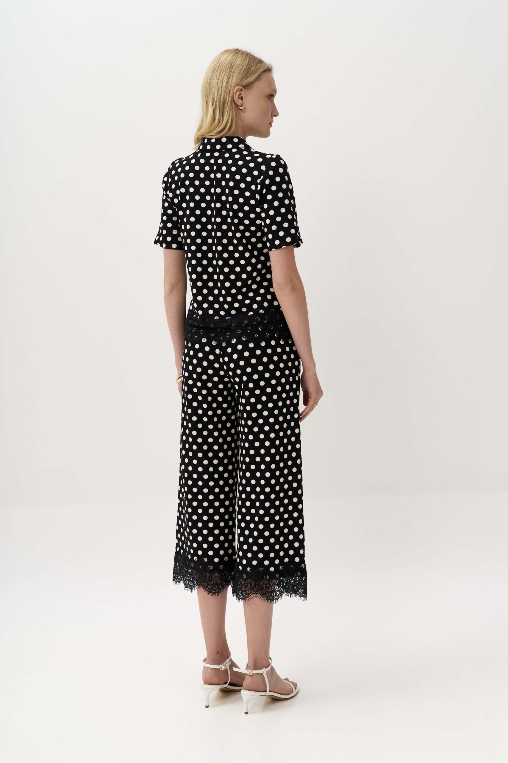 Μοντέρνα πουά ζιπ κιλότ από πλεκτό ύφασμα βισκόζης με λεπτομέρεια από δαντέλα