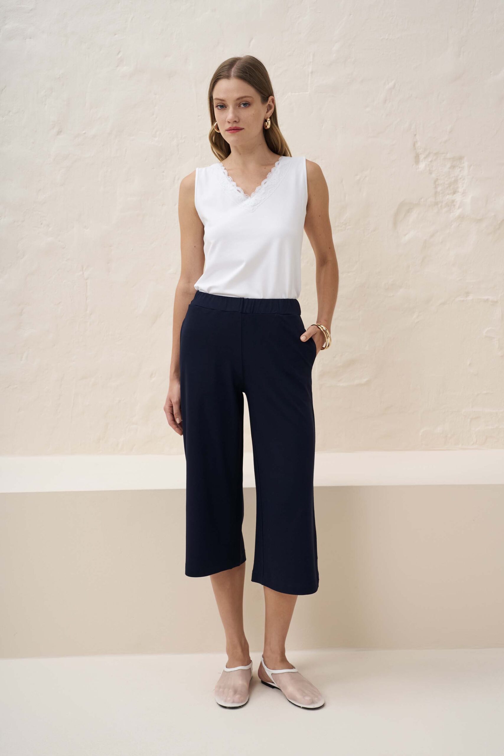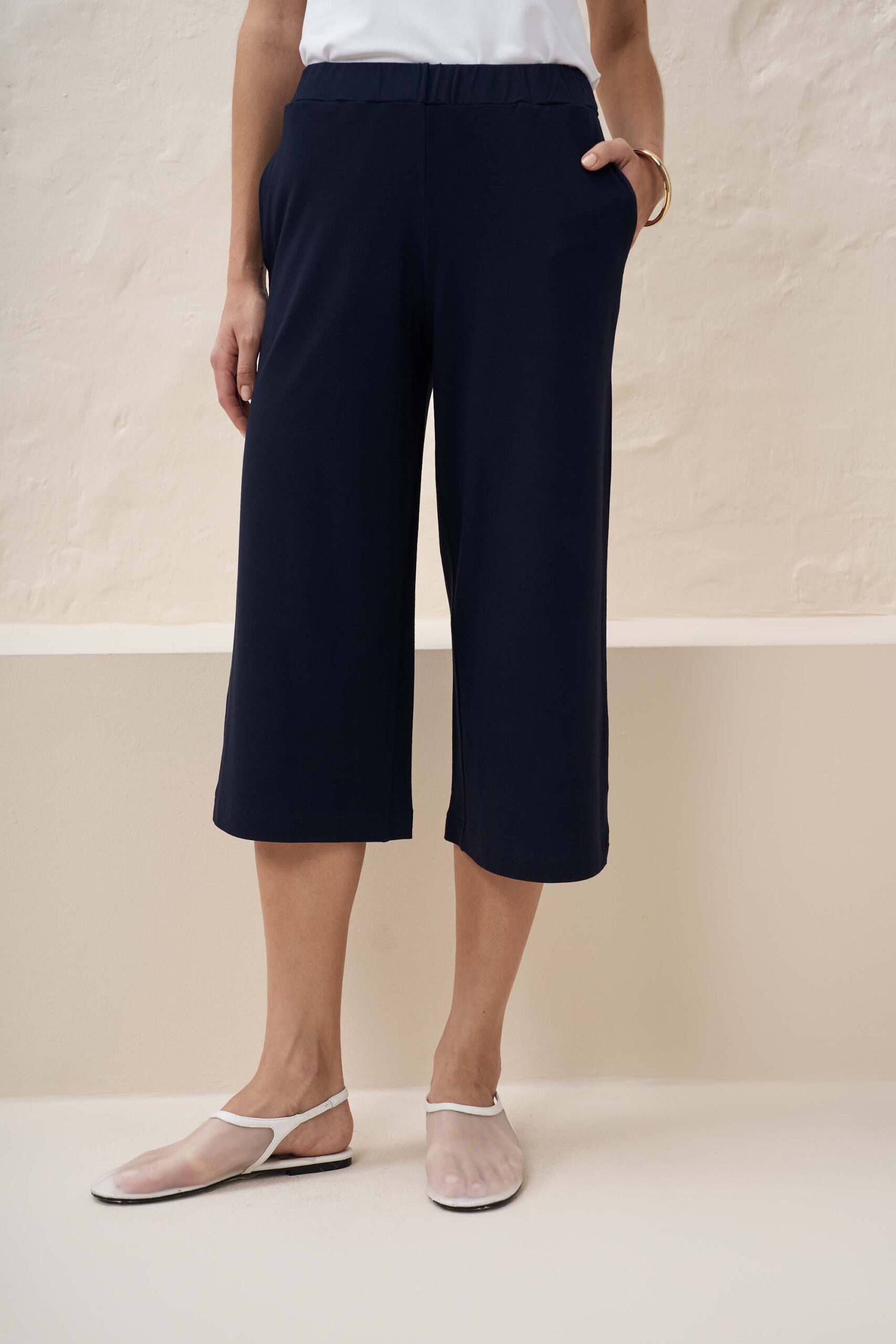 Minimal μονόχρωμη ζιπ-κιλότ σε πλεκτό ύφασμα από βισκόζη