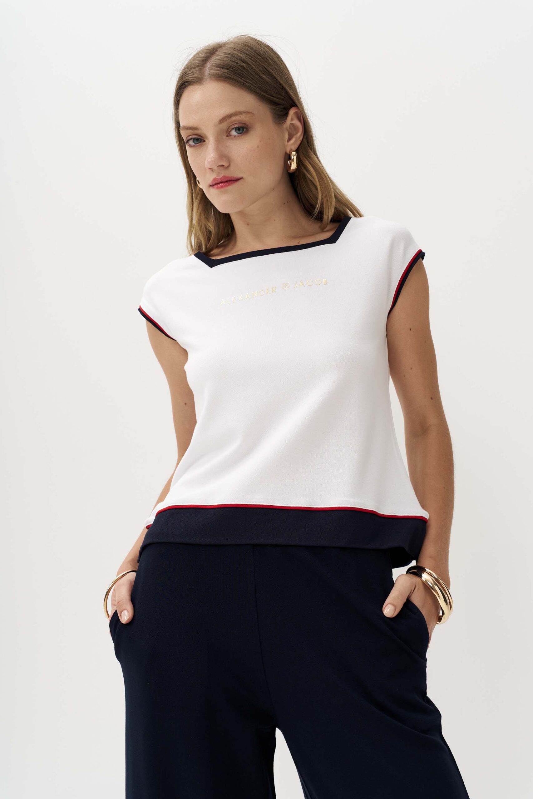 Ρομαντική μπλούζα από πλεκτό ύφασμα βισκόζης με τύπωμα navy girl